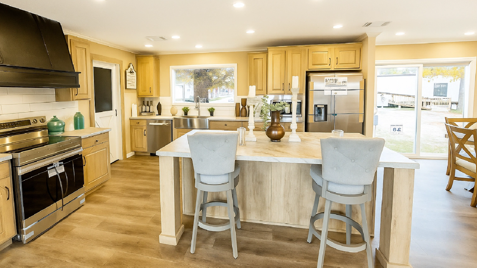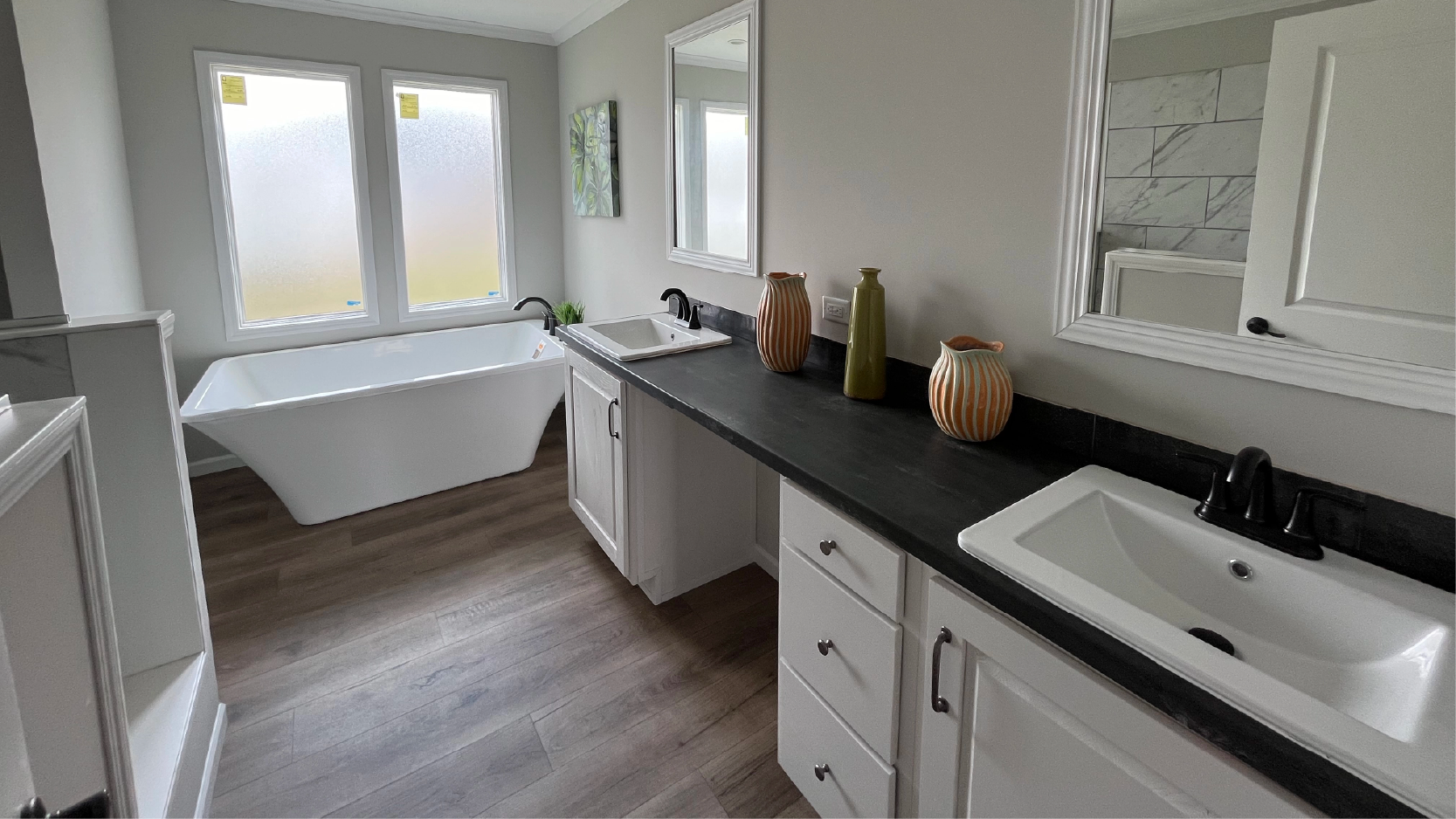 The Big Easy is our most popular double wide! What’s not to like? The floated sheetrock walls, crown molding, upgraded range hood, electric fireplace and huge kitchen with a walk-in pantry are only some of the features that make this home a top seller. Not to mention- this home comes with 3 spacious bathrooms and a secondary living room/den on the opposite side of the home. Come see the home that everyone is custom ordering, today!